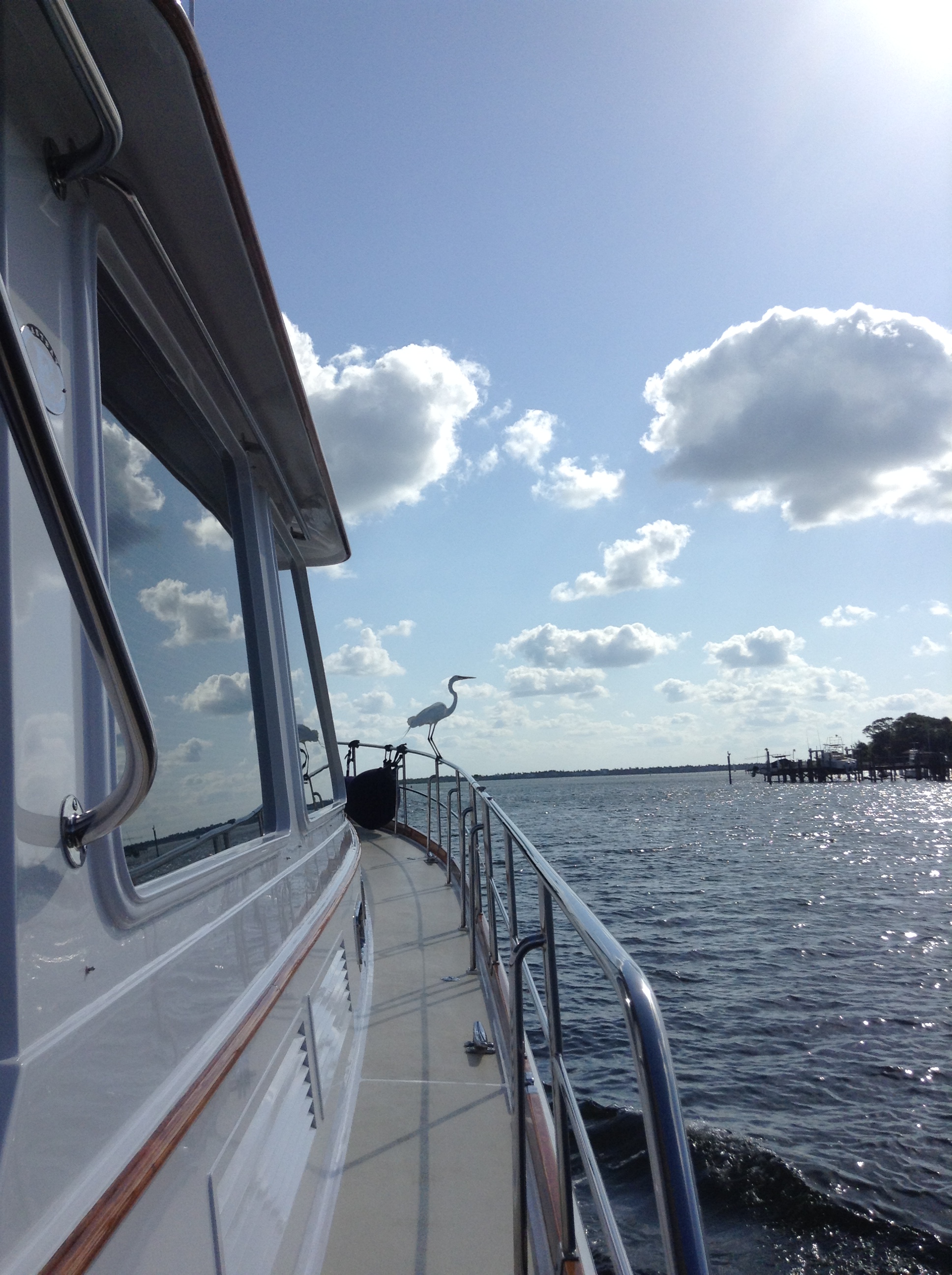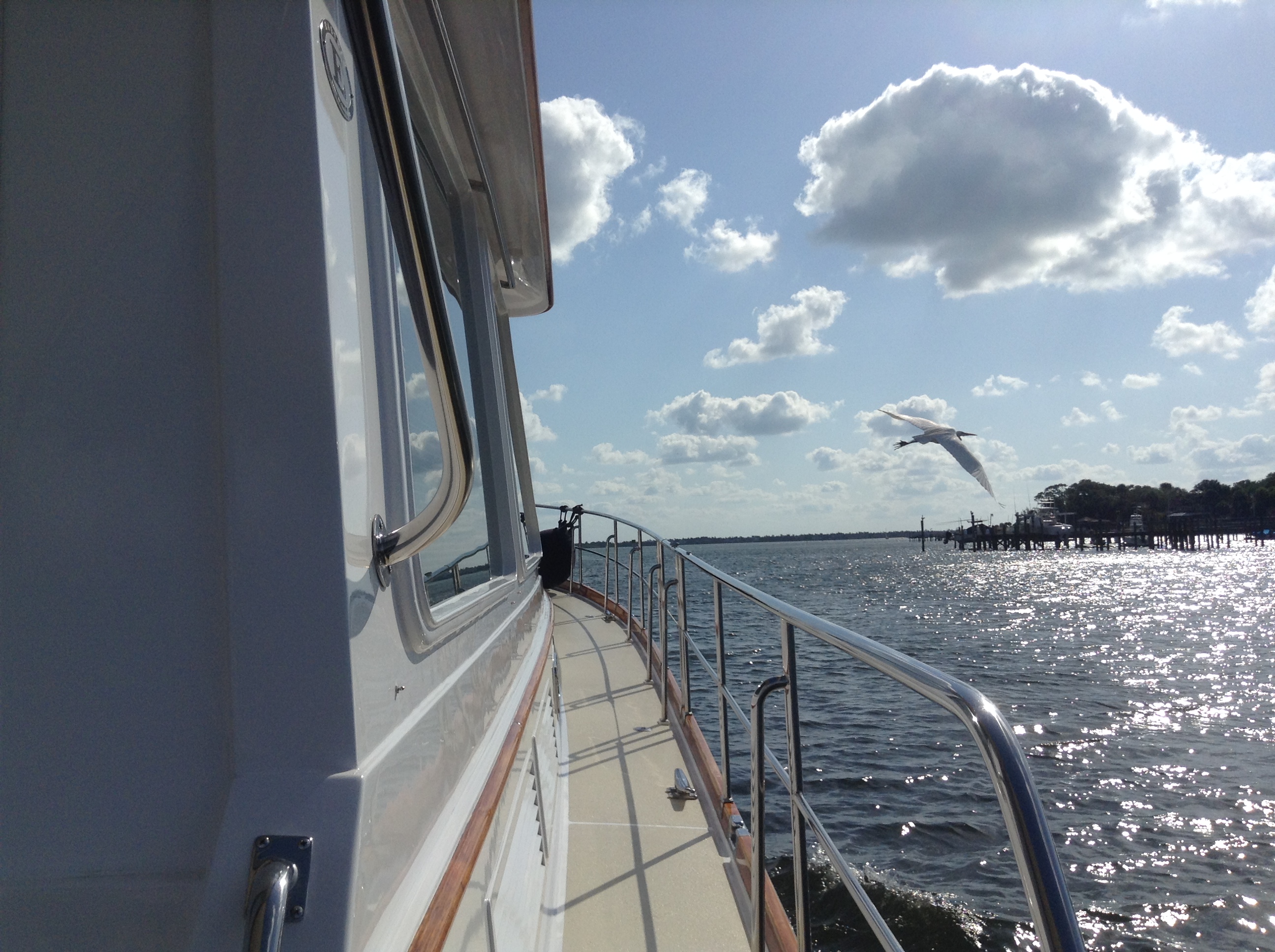 Indeed it was a long but lovely day on the ICW of Florida’s northern section. We had to pass through very densely populated areas of Palm Coast and Daytona with many restrictions in speed and No Wake Zones , but we managed to get through it all and reach Titusville , FL just about 5:30 pm. Our rout took us through the pristine wetlands of Merritt Island with an abundance of birds and manatees as well as our steady companions, the dolphins. A very peculiar development occurred here as well; our morning started off with the gentle greeting of a dolphin and evolved into a steady accompaniment of white butterflies. They kept on swinging by across our windshields or simply fluttering along side of the wheel house. What a blessing this all has been looking at it from all perspectives of life as it has recently been.