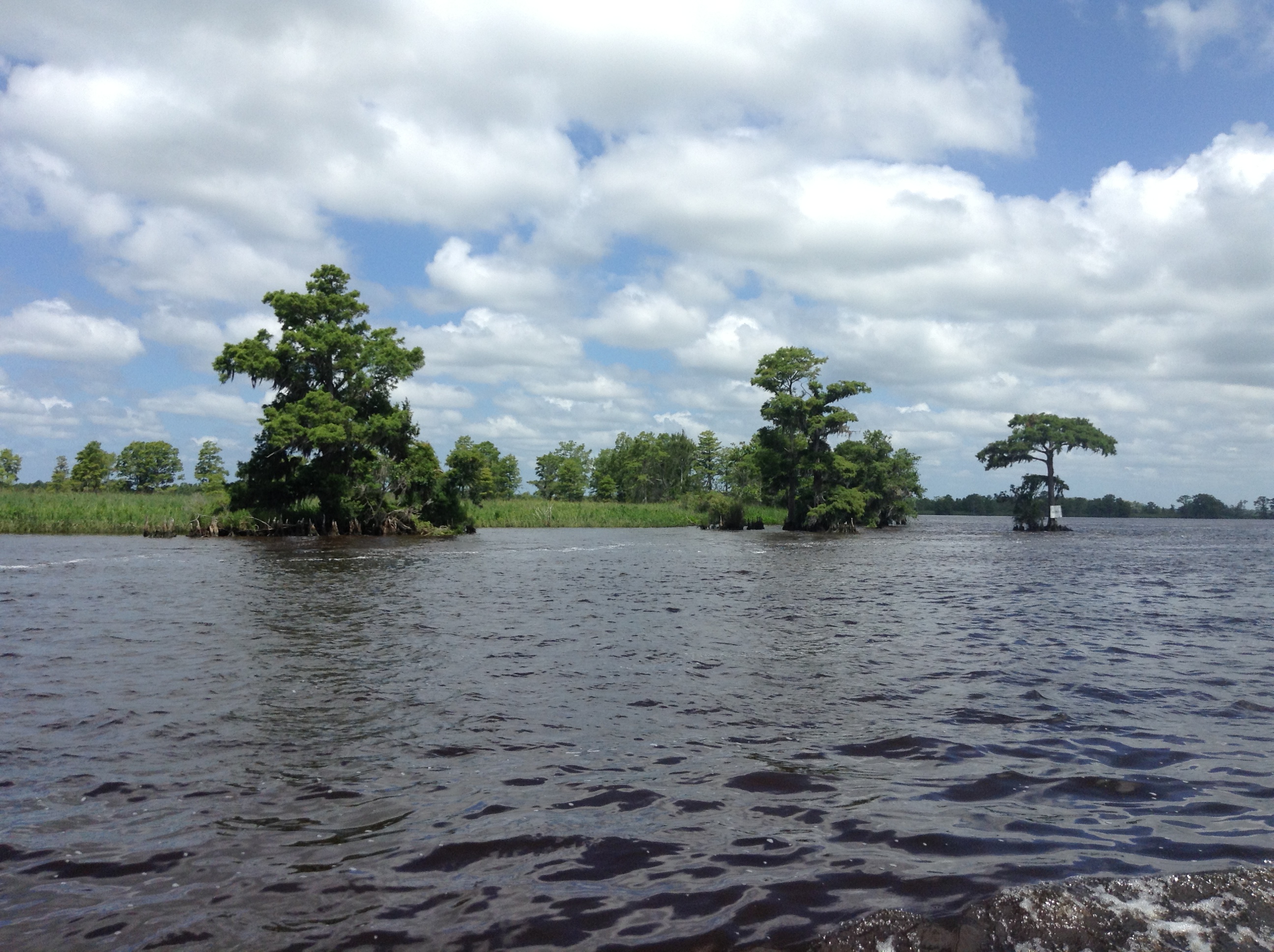 Leaving Coinjock at just about 8:15am and it is a foggy and very calm and serene day. We thought that we left the fog behind last September when leaving Nova Scotia and Main behind but here it is again. It seems that the long and cold winter as well as the Spring rains have delayed the warm and sunny days that are still to come. All the sunny days so far have indicated the intensity of the sun already and as our voyage progresses and we are approaching mid day we witness the rays of the sun burning through the fog clouds above. The waters of the Albemarle Sound are as calm as can be and the visibility is drastically increasing too. May the rest of our journey bless us with calm waters and friendly skies!