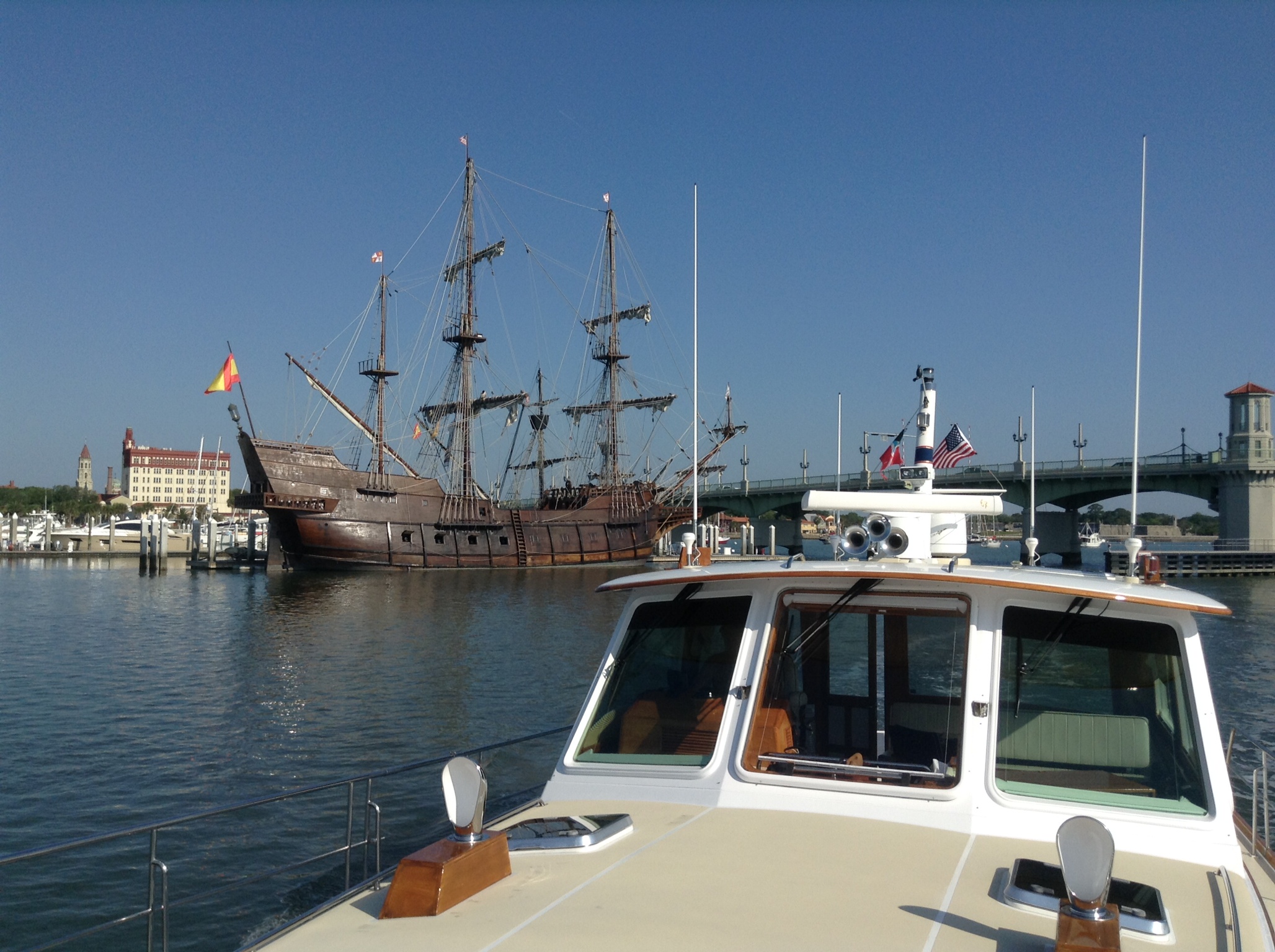 Once out of the dangerous and shallow area we plotted our course going south going towards St. Augustine. According to the navigational charts calculations we have some 120 nm to cover and at our current speed of some 16-17 kn should arrive at our destination just past 6 pm. Our plan is to tie up at the Conch House Marina. We have stopped there last summer as we embarked on our way going north. Pleasant memories of our stay and the great restaurants of St. Augustine are enticing our appetites.