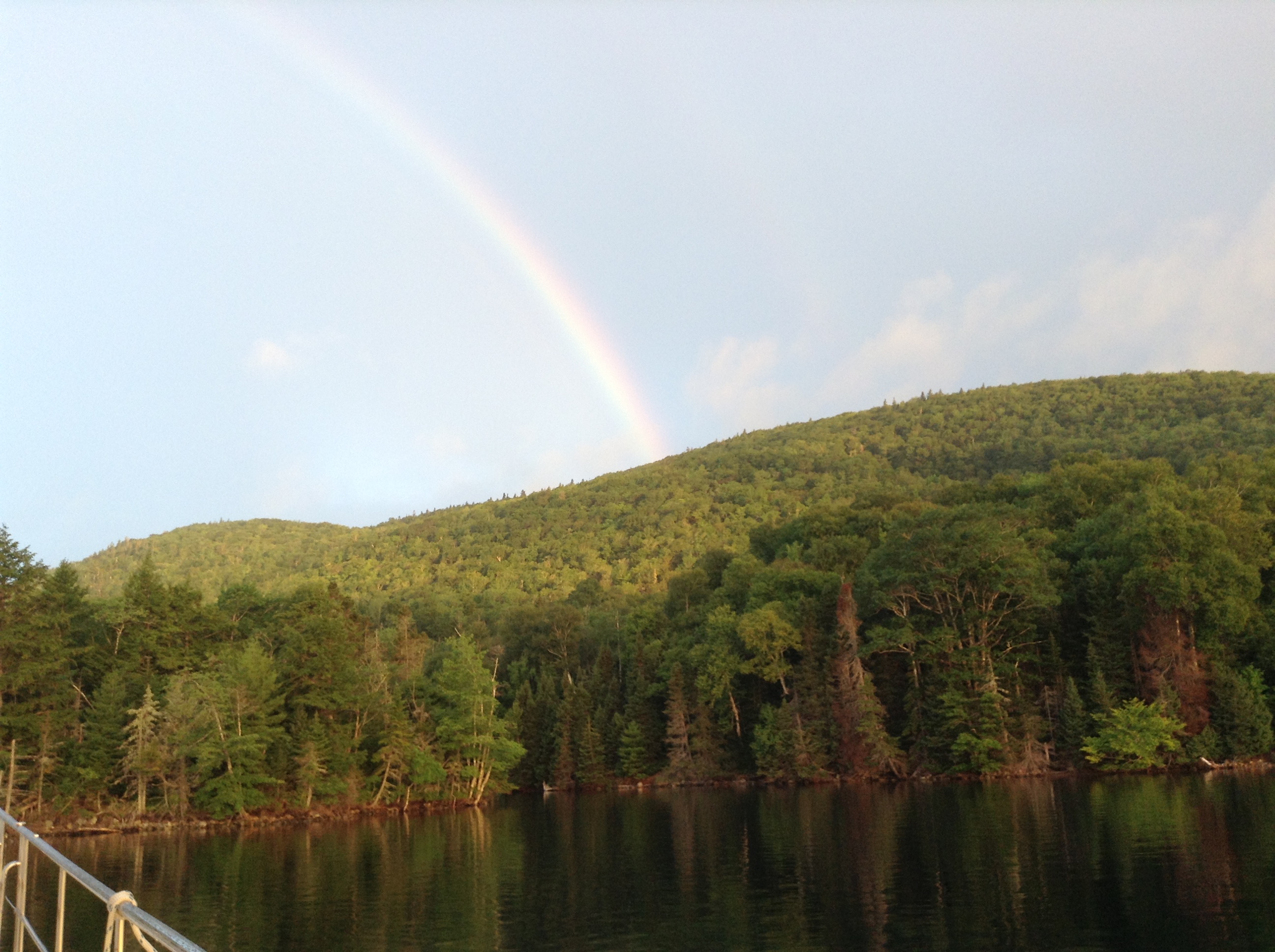 Last night I prayed for special blessings to be bestowed upon each one of Contessa’s crew and here I was awaken to just that. The manifestation of a dream come true. It is at sunrise and there is this special feeling urging me to get up and see it. I don’t know what yet I am going see, yet I follow my intuition and here it is; the sun is rising behind the trees of our cove, gentle rain is falling and washing away the nights veils while a full rainbow manifests above our cove and our Contessa resting quietly in the peace of it all.