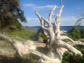 It is a lovely day and while I am busy preparing Osso Bucco for dinner Jelaine and Tom go hiking the St. Peter’s trail. It is 5 mi path that takes you down by the water and cross the forest paths to the lock and back either through town or again the trail leading now up some serious inclines and more of beautiful views of the lighthouse and the water of the bay on the other side of the mountain. Today those two had a rescue of a raven caught up in some strings and a branch of a tree. Tom climbed the tree to free the struggling bird from certain death and cut her loose from unfortunate captivity.