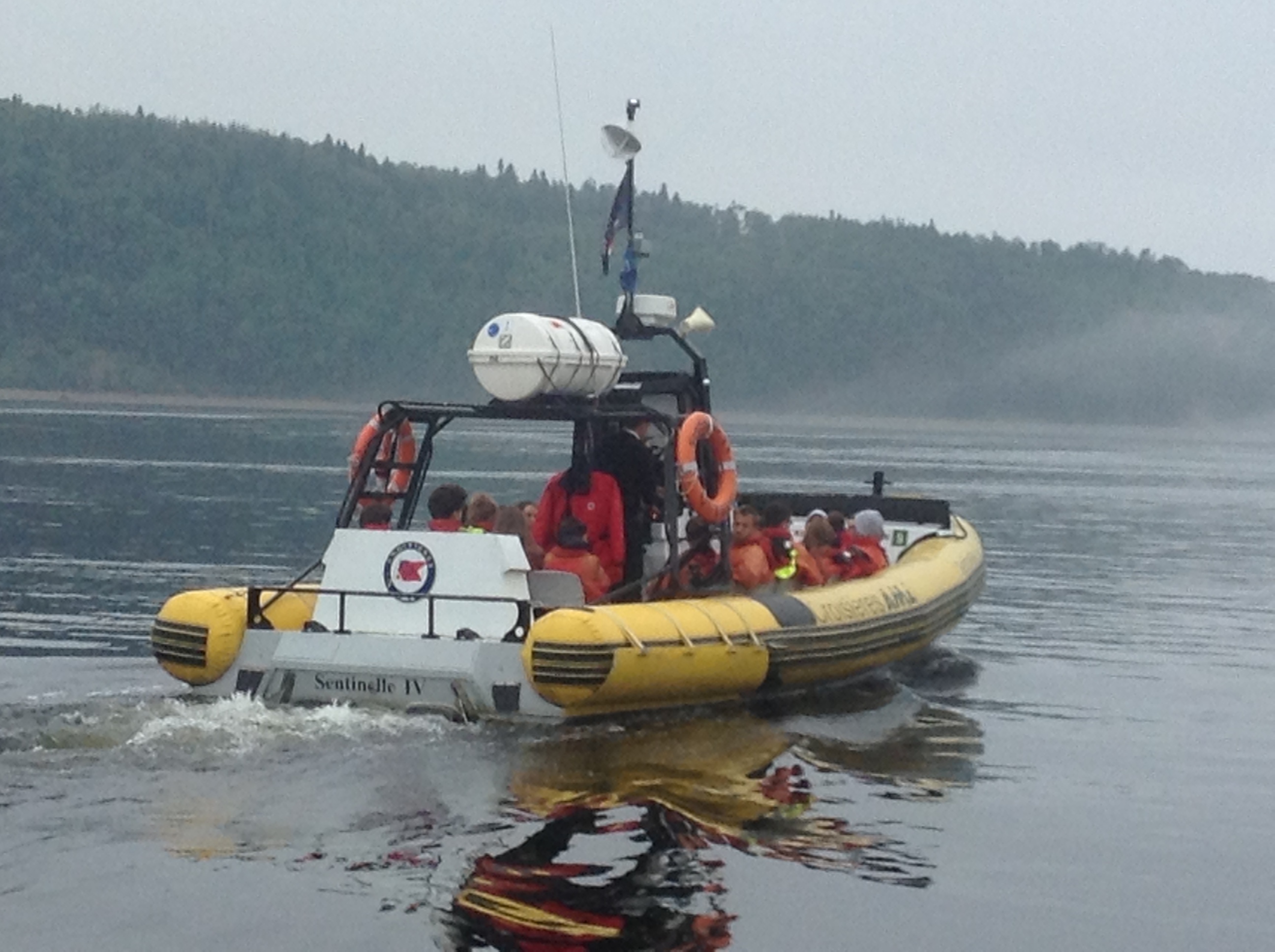 The morning started of in perfect condition as most of our mornings have so far. Skies are blue, sun is shining, waters are calm and the winds are fair. Our friends Sabrina and Stephan have driven all the way from Montreal to spend the weekend with us on this special leg of our journey going up the Saguenay river and experience some special encounters with our ancient yet so magnificent beings, lovingly called ‘gentle giants’, the whales.