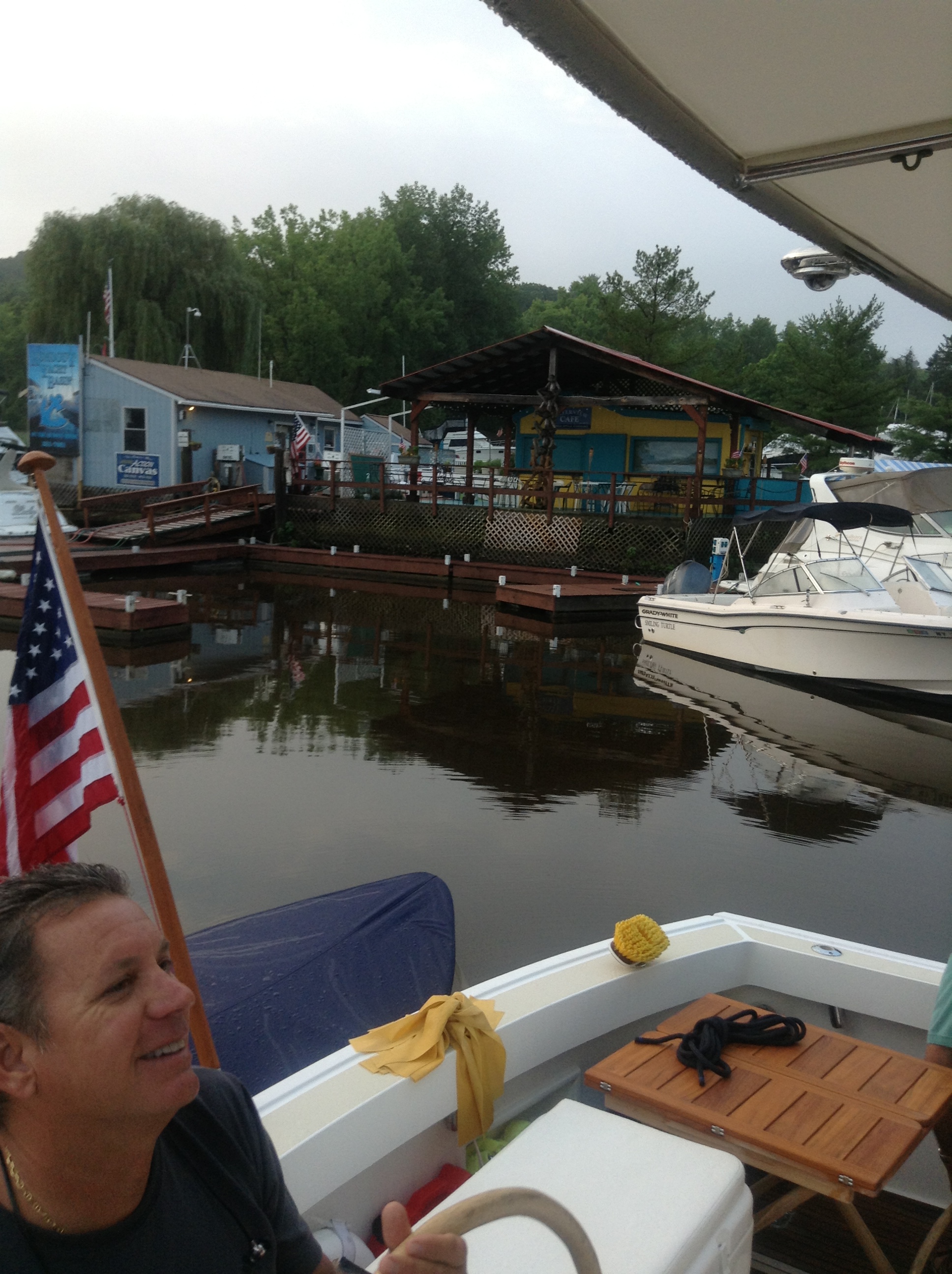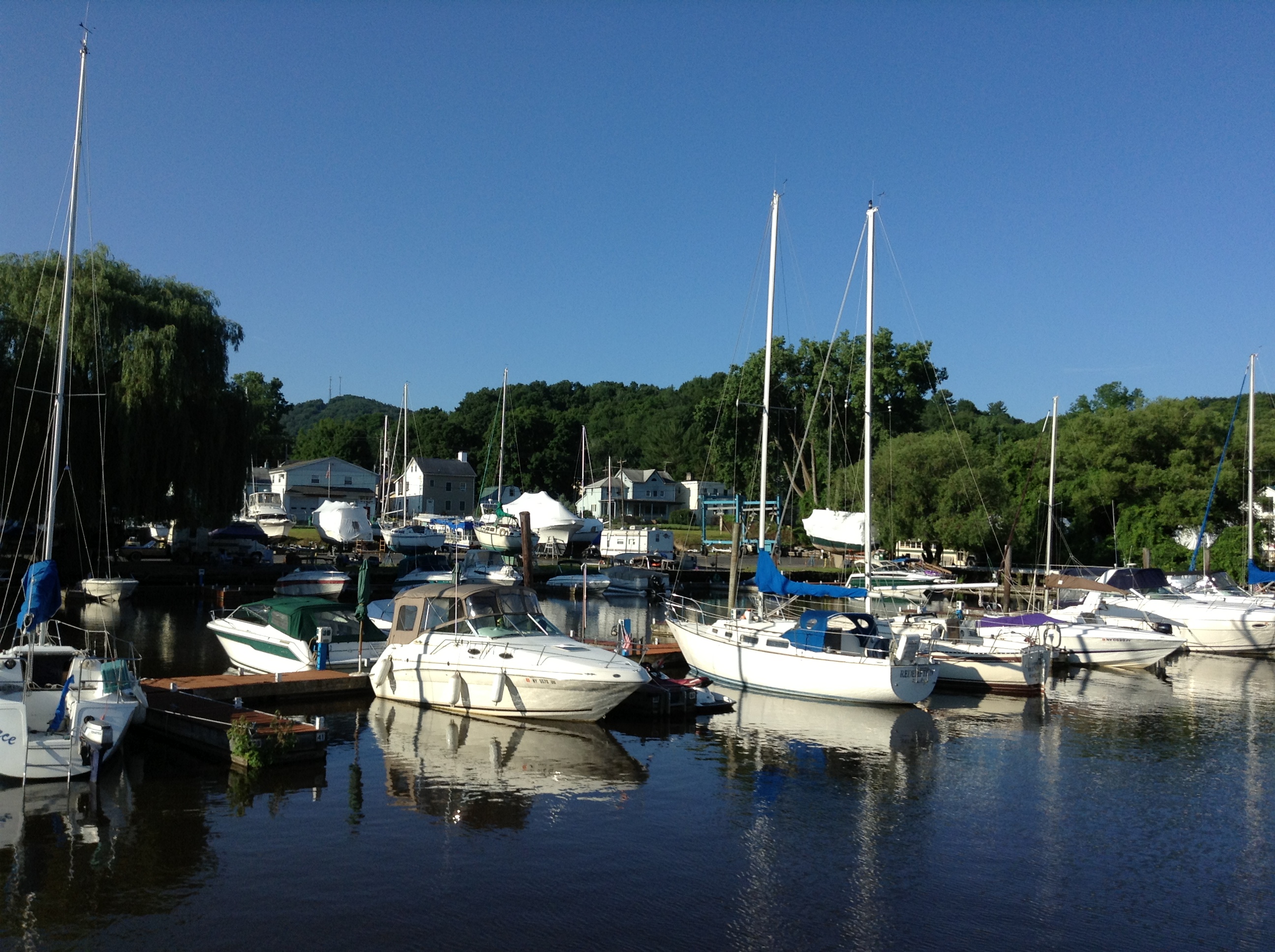 Just about lunch time we arrived at our marina in Kingston named Rondout. It is the best marina in town, my friend Simone said! We wondered what the others looked like? Nevertheless, it is perfectly situated in the valley between the hills, just down the river from the “High Falls” and has fuel, food and a pool. That, I understand is a luxury in this neighborhood. Kingston is surrounded by numerous small towns with their centuries old stone homes replicating the building structures and architecture of Holland and England. I can only imagine how pictures it is here in the fall when the canopies of trees turn into a palette of golden, red and yellow displays.